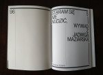 W katalogu opublikowano tekst kuratorki wystawy – Barbary Piwowarskiej oraz wywiad Krystyny Czerni z Jadwigą Maziarską, przeprowadzony w 1994 roku dla TVP Kraków, dobitnie dookreślający relację między dziełami artystki a obszarami jej zainteresowań i poglądów na sztukę, i esej Jana Michalskiego, niezwykle osobisty i subiektywny w wyrazie, skupiający się na wyrysowaniu portretu charakterologicznego artystki. Teksty dobrze korelują z obszerną, i uzupełnianą przez najważniejsze wypowiedzi Maziarskiej zachowane w wywiadach, notatkach i wieloletniej korespondencji z najbliższą przyjaciółką Erną Rosenstein, warstwą ilustracyjną w katalogu. Takie zestawienie pozwala czytelnikowi na refleksję na temat skomplikowanych związków między wizualnością dzieł Maziarskiej i jej wypowiedzi, którymi nieraz bawi się, zwodząc widza i zmuszając go do samodzielnego przemyślenia dzieła i polegania na własnych intuicjach.