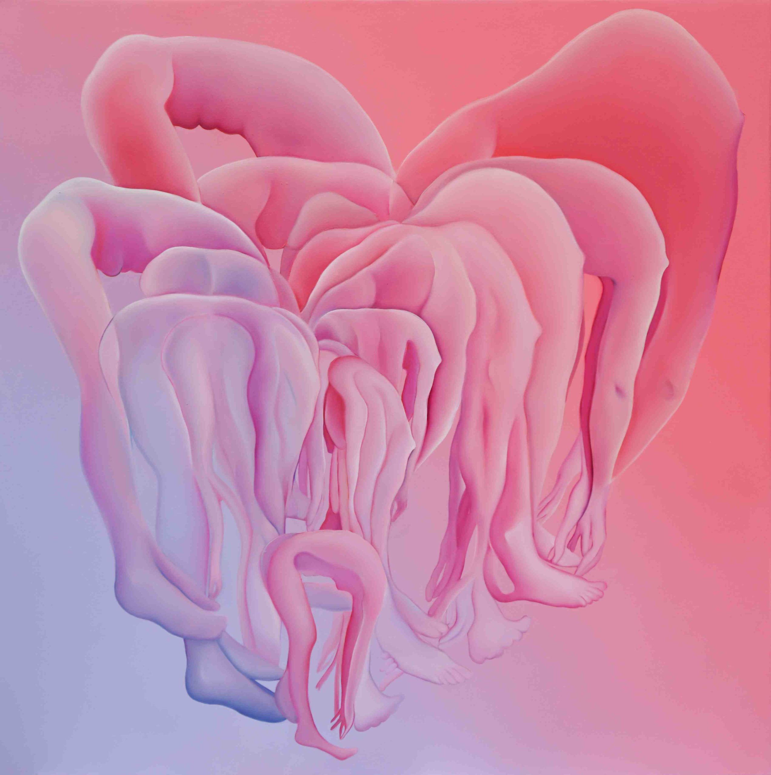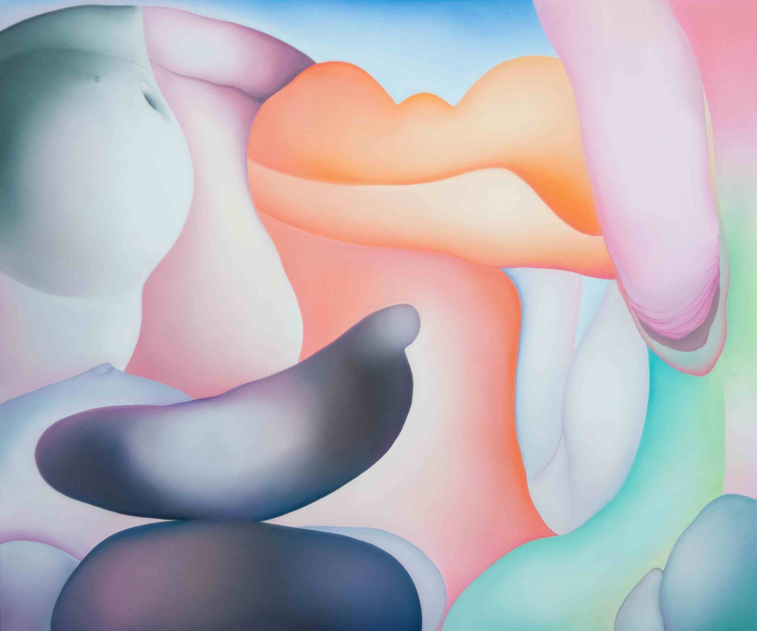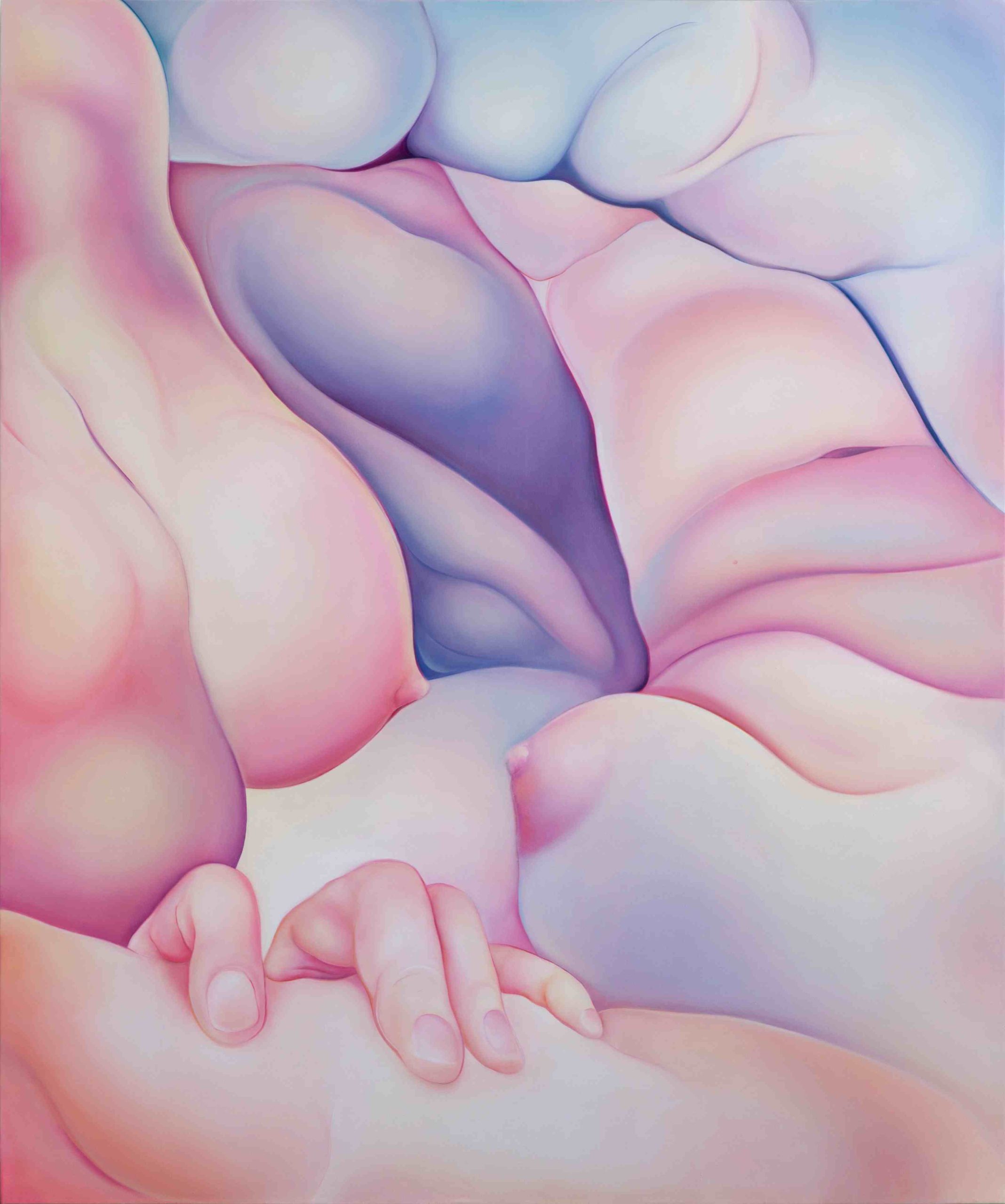Miękkie przejścia tonalne, gradienty i rozświetlone płaszczyzny budują aurę pastelowej ekstazy. Cukierkowa estetyczność i dekoracyjność obrazów artystki okazują się jednak zwodnicze. Pod powierzchnią delikatnych barw kryje się pewna biologiczna konkretność: ciała przeciekają, sklejają się, tracą kontury; są pożądliwe, zachłanne, namiętne. Manifestują swoją materialność. Skłębione na płótnach formy często przypominają pejzaże – fale, pasma górskie, złożone struktury organiczne. Zarówno w poezji Poświatowskiej, jak i w malarstwie Przyżyckiej przyroda staje się świadkiem i uczestnikiem cielesnych aktywności. Identyfikacja z naturą prowadzi do rozpuszczenia opozycji między tym, co ludzkie i nieludzkie, fizjologią i krajobrazem. Miłość i zmysłowość nie są tu metafizycznym uniesieniem, lecz immanentnym ruchem materii. Twórczość artystki wymyka się jednak prostemu przypisaniu do modelu czysto zmysłowo-emocjonalnego. Jest jednocześnie liryczna i konceptualna, pozornie chaotyczna, a przy tym głęboko świadoma formy i jej wewnętrznej logiki.  Kompozycyjna dyscyplina – rytm powtórzeń, porządek układów i precyzja przedstawień – współistnieje tu z radykalną intymnością i orgiastycznym nadmiarem materii.